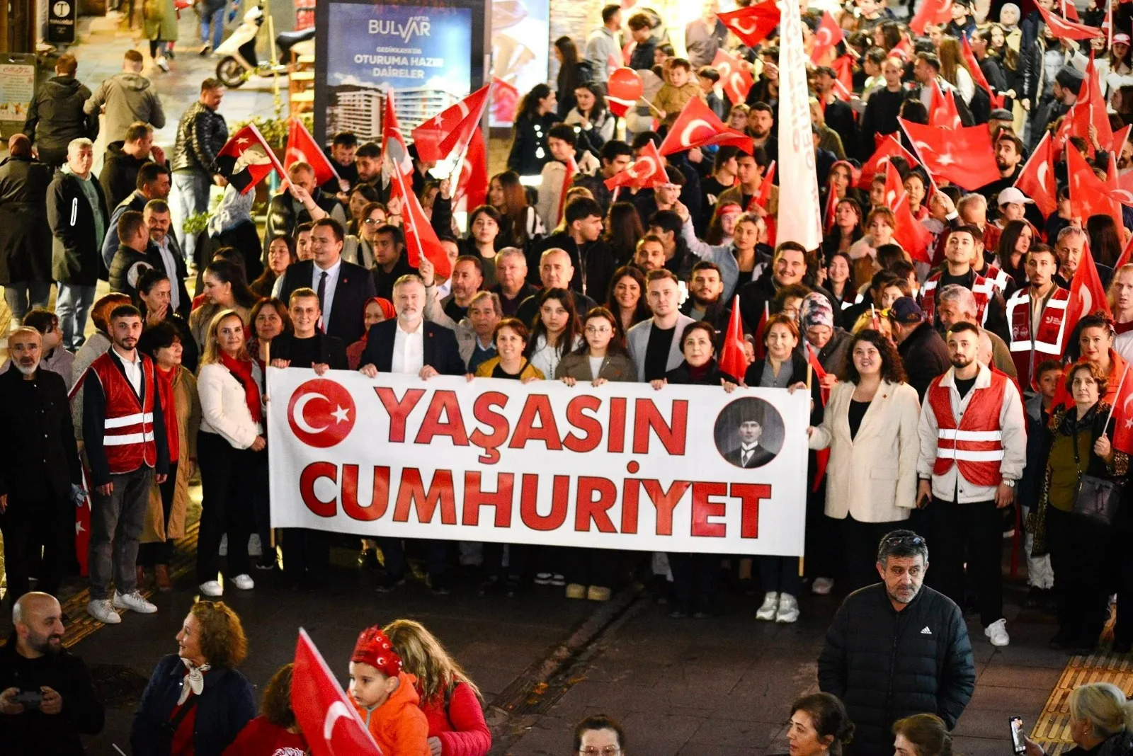 Cumhuriyetin ilanının 102. yılı kapsamında düzenlenen Fener Alayı ve Cumhuriyet Yürüyüşü, Yeniyol Mevkii’ndeki Çotanak İlkokulu önünden başladı. Giresun Belediyesi bandosunun çaldığı marşlar eşliğinde ellerinde Türk bayrakları ve meşalelerle yürüyen binlerce vatandaş, Atatürk Meydanı’na kadar büyük bir coşku içerisinde ilerledi.